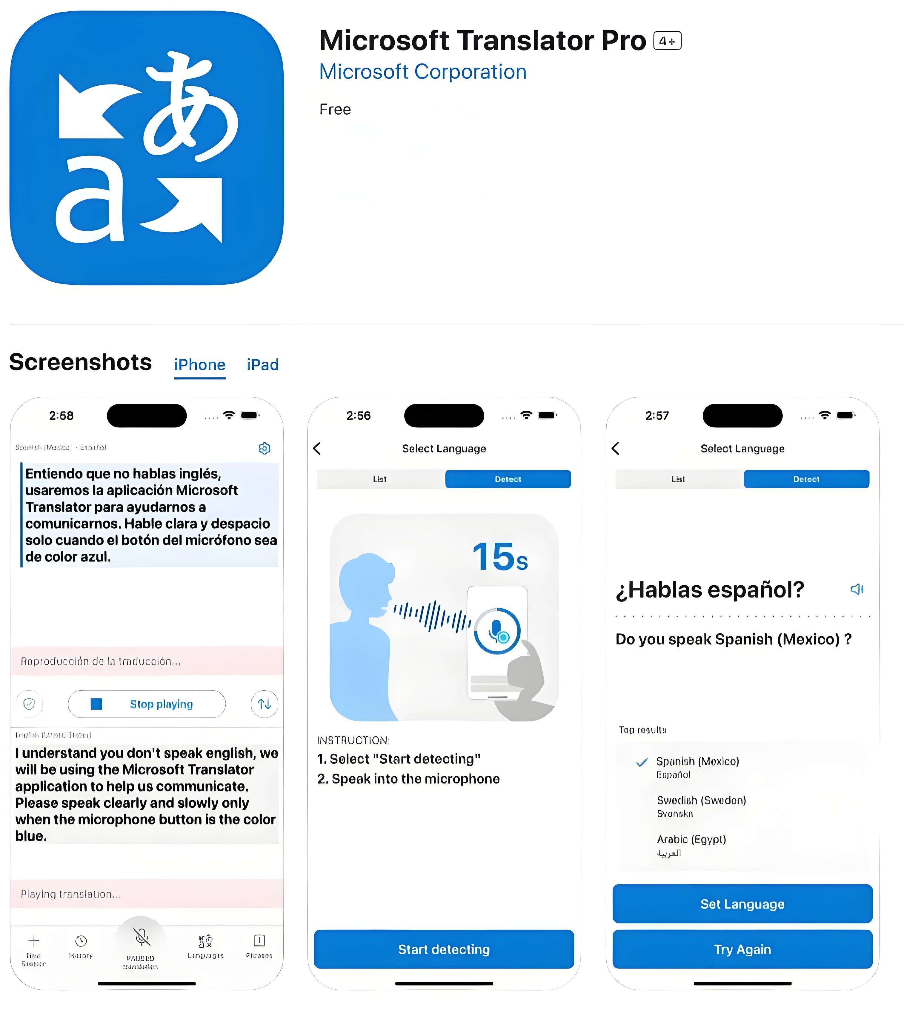 这款应用已在iOS平台上线,尽管中国区App Store尚未上架,但美国用户已经能够体验。Microsoft Translator Pro可在工作场所使用,支持实时语音对语音翻译,可显著地提升同事、用户以及客户之间的沟通效率,让语言不再是职场障碍。
