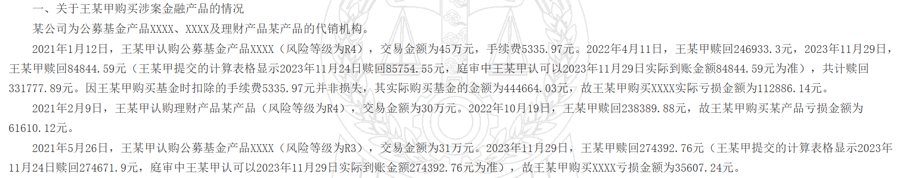 根据司法文书还原的交易细节,2021年1月至5月,短短五个月内,王女士在周某的持续推介下,先后分三次认购三只代销基金,累计投入本金达到106万元。梳理这笔投资的产品结构,能清晰看到极端的风险错配问题:106万元投资全额投向中高风险产品,其中两只基金风险等级为R4(高风险),剩余一只为R3(中风险)。