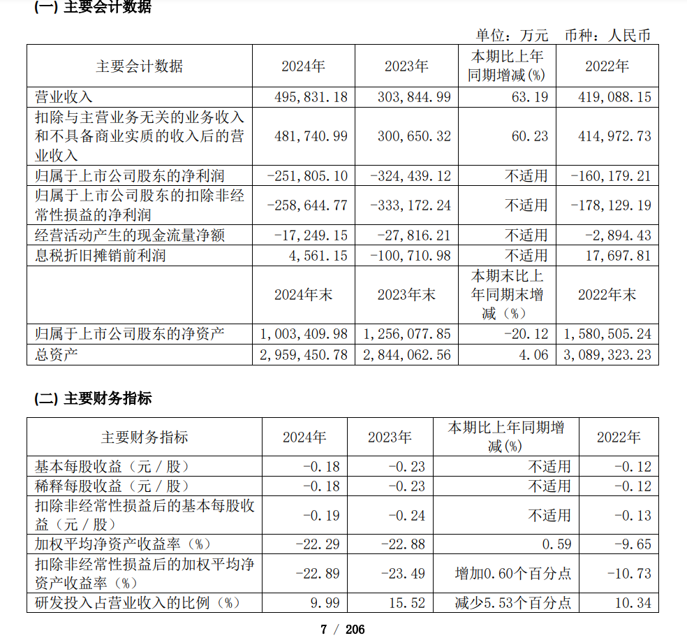 在提交港股IPO之前,和辉光电交出了一份依然亏损较大的业绩。2024年,和辉光电营收和净利润分别为49.58亿元和-25.18亿元,营收和净利润较上年同期出现明显改善。2025年一季度,公司营收和净利润分别为12.08亿元和-5.08亿元,营收较上年同期增长7.45%,净利润较上年同期的-6.42亿元也有所改善,但依然处于亏损之中。