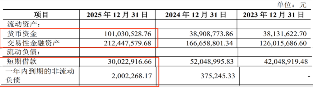 客观而言,有了一众投资方的支持,长进光子的资金链仍稳健。截至2025年末,公司短期借款为3002.29万元、一年内到期的非流动负债200.23万元。同期,其货币资金为1.01亿元、交易性金融资产2.12亿元,留有相对充足的周转空间。