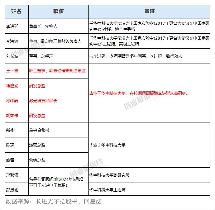 而公司两位创始人李进延、李海清都曾在华中科技大学的武汉光电国家实验室(2017年更名为武汉光电国家研究中心)任职。其中,李进延曾是教授、博导,李海清则历任工程师、高级工程师。