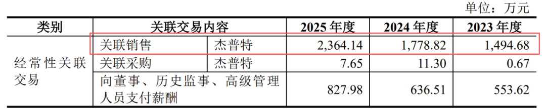 报告期内,公司对杰普特的销售收入分别为1494.68万元、1778.82万元、2364.14万元,占当期营业收入比例分别为10.34%、9.28%、9.58%,一直是公司的前五大客户。