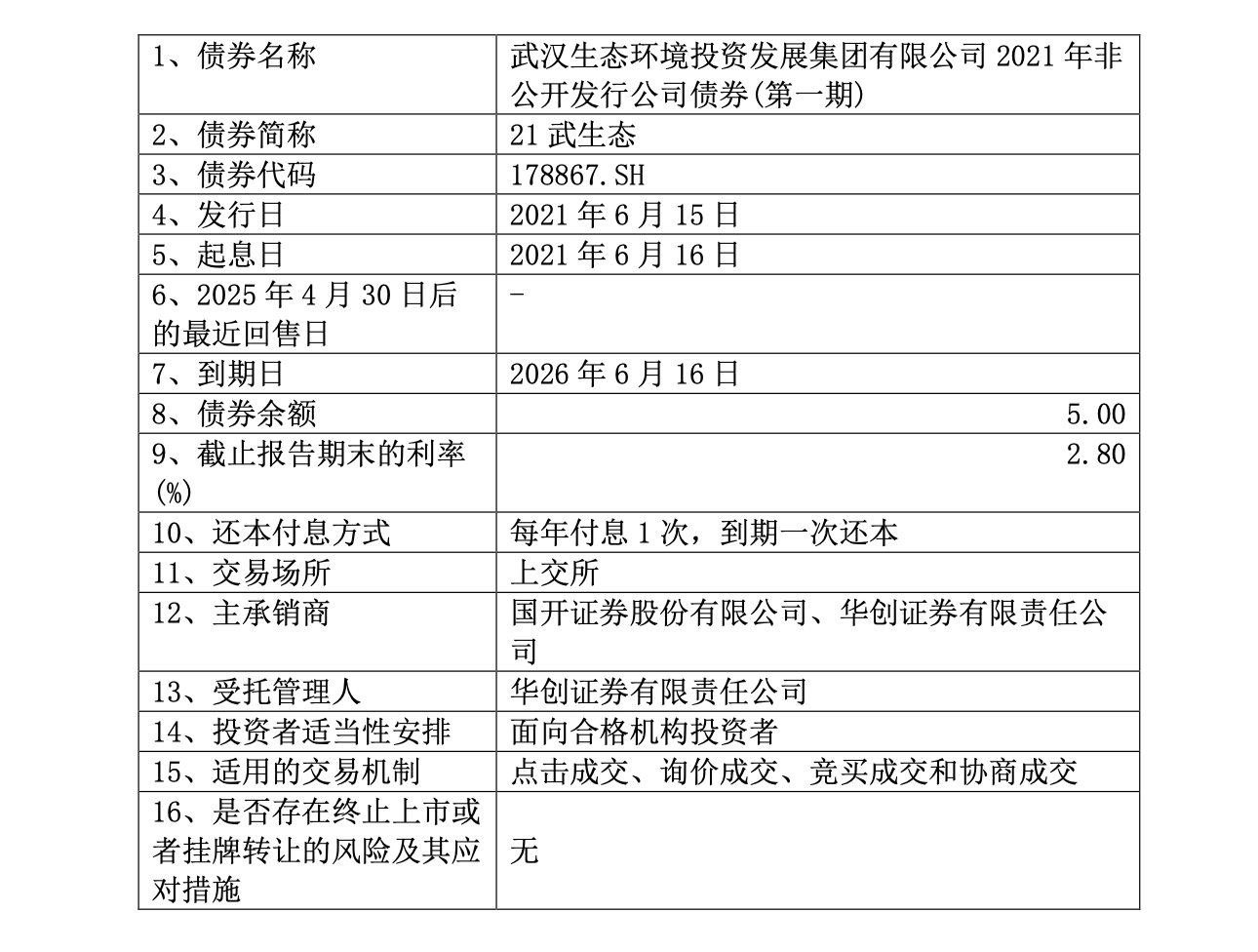 武汉生态集团是武汉市属重点国企,主营业务涵盖生态环境治理、基础设施建设及水务运营等领域,自2021年以来,该公司在债券市场频繁亮相,先后发行了21武生态、21武生01、22武生01等产品,总发行规模数十亿元。