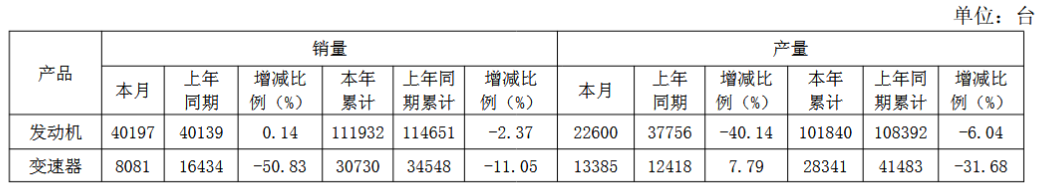 产量方面,公司3月生产发动机2.26万台,同比下降40.14%;本年累计产量10.18万台,同比下降6.04%。具体数据如下: