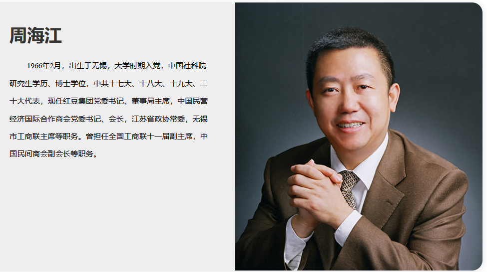 公开资料显示,周海江现任红豆集团党委书记、董事局主席。